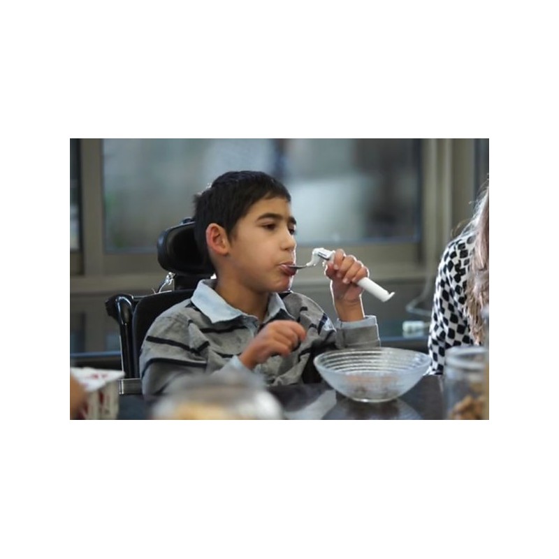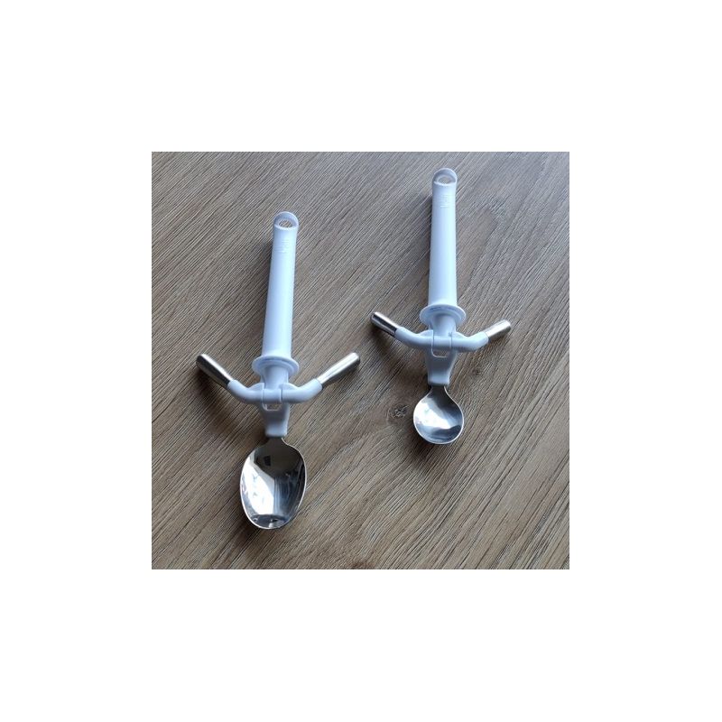 La cuillère Elispoon est particulièrement destinée aux personnes souffrant de la maladie de Parkinson. Elle est équipée d'un balancier qui permet de garder la cuillère droite et stable en toute occasion.