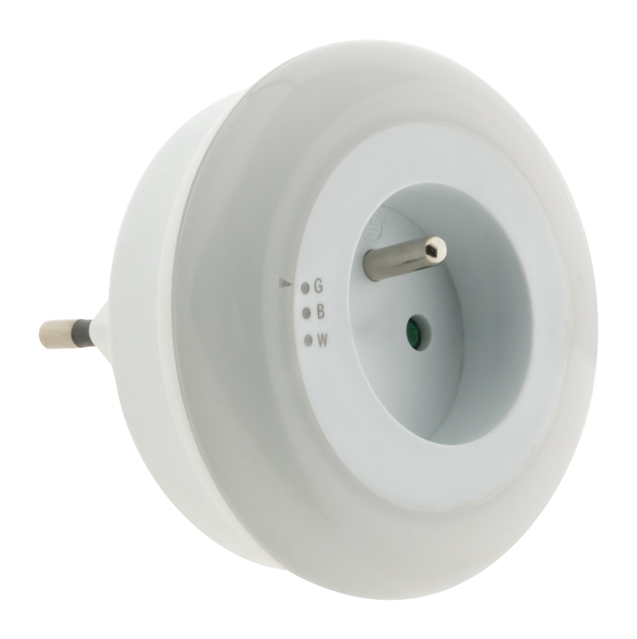 Cette veilleuse gigogne permet une double utilisation : usage de la prise électrique, associé à sa fonction de veilleuse. Equipée d’un capteur jour/nuit , elle s’allume automatiquement et diffuse une lumière douce (bleu, verte ou blanche).
